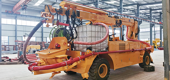3、同步速凝劑添加采用進(jìn)口軟管泵,液壓馬達(dá)驅(qū)動,電比例流量閥調(diào)節(jié)轉(zhuǎn)速以達(dá)到調(diào)節(jié)流量的目的,液晶顯示和觸屏設(shè)置速凝劑添加比例,且在屏幕和器上均可隨時修改設(shè)置,速凝劑的添加量緊隨砼的泵送量同步變化而保持添加比例按設(shè)定值運(yùn)行,這些均由可編程控制器控制。由此可實(shí)現(xiàn)對速凝劑添加量的控制,以達(dá)到效果,回彈和節(jié)約速凝劑的目的。機(jī)器上配有容積為1.0m³的耐腐蝕塑料材質(zhì)的速凝劑容器,速凝劑軟管泵也可從外部容器中抽吸速凝劑,根據(jù)實(shí)際情況可方便地進(jìn)行切換。