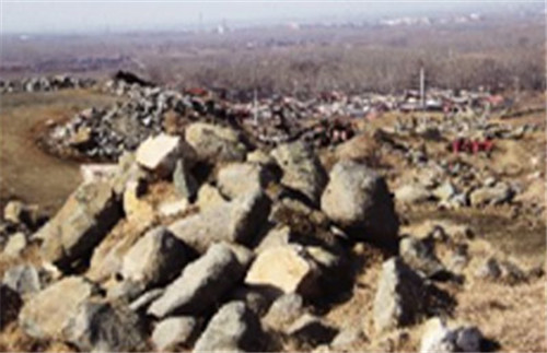 記者沿著一條路進(jìn)入采石場(chǎng)看到,開采較規(guī)則的石頭被裝入容積1立方米的木框里,但更多的是,開采過后,在近百畝的地面上,高低不平地散落著大小不一的石頭,有些地方,因?yàn)橥谑^,形成10多米深的溝壑。