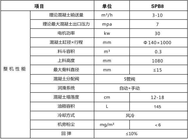 SPB8型濕式混凝土噴射機(jī)(金屬礦山專用)主要技術(shù)參數(shù):